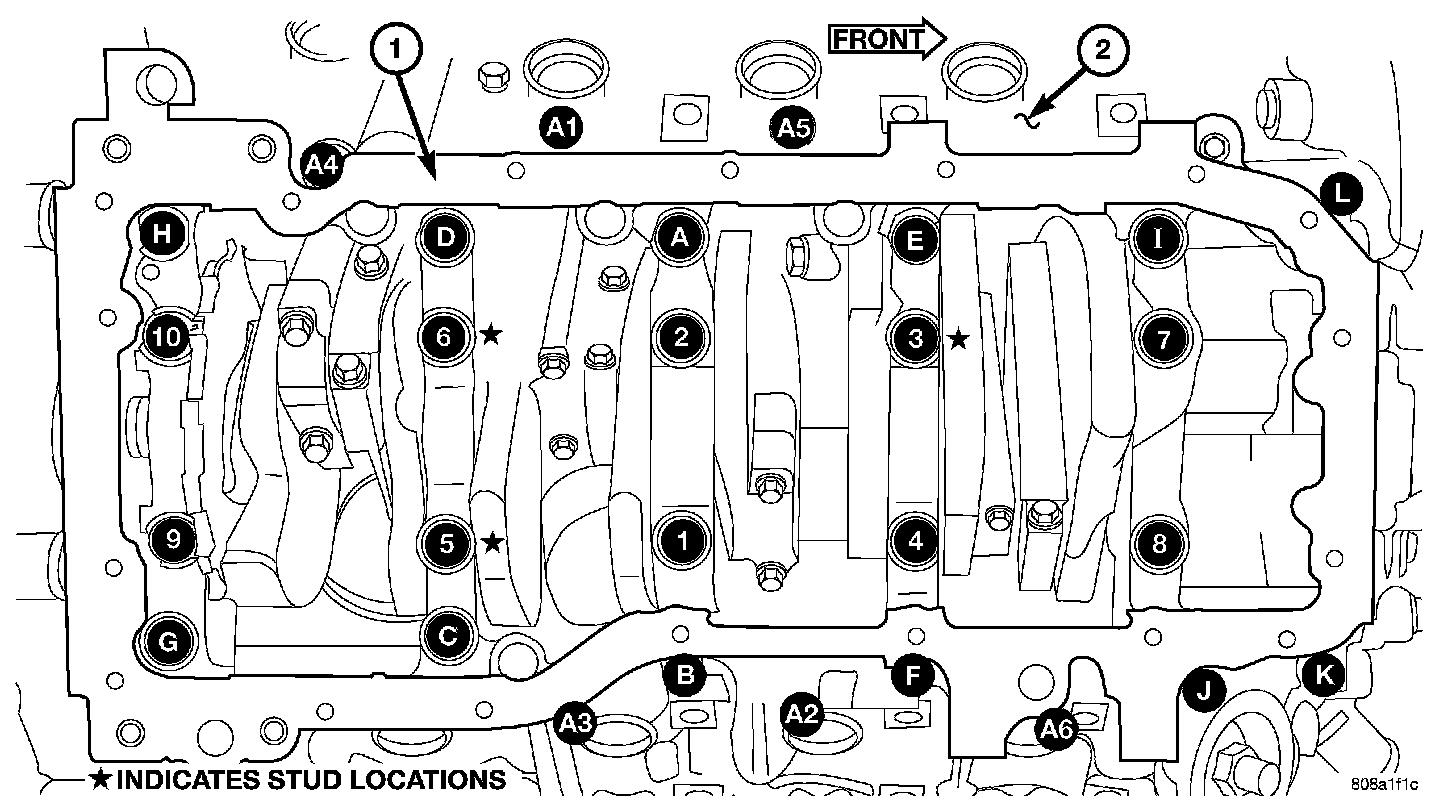^ Install the bedplate retaining bolts, making sure to place the stud bolts in the correct location, Torque the bolts in the sequence shown.