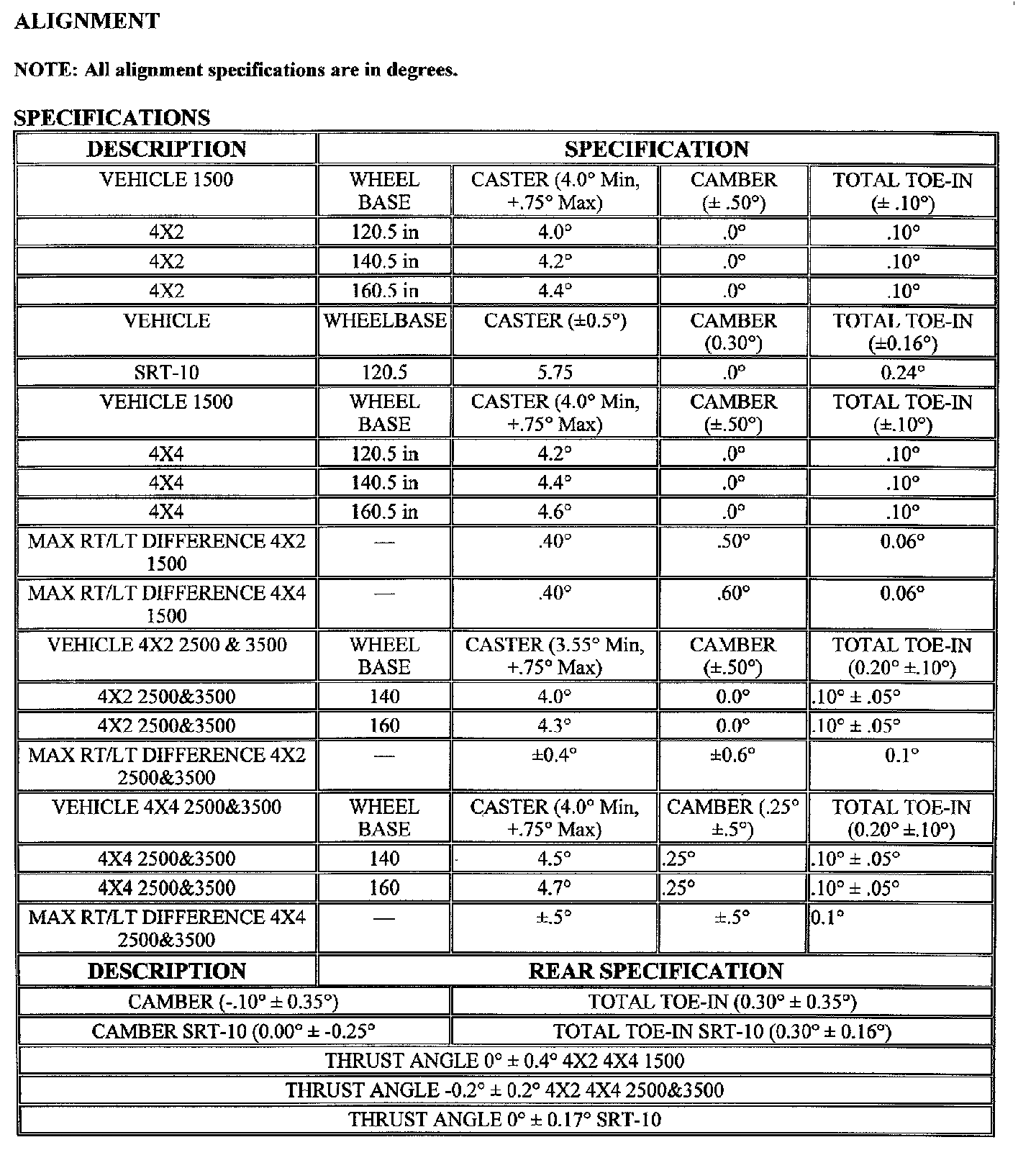Alignment: Specifications