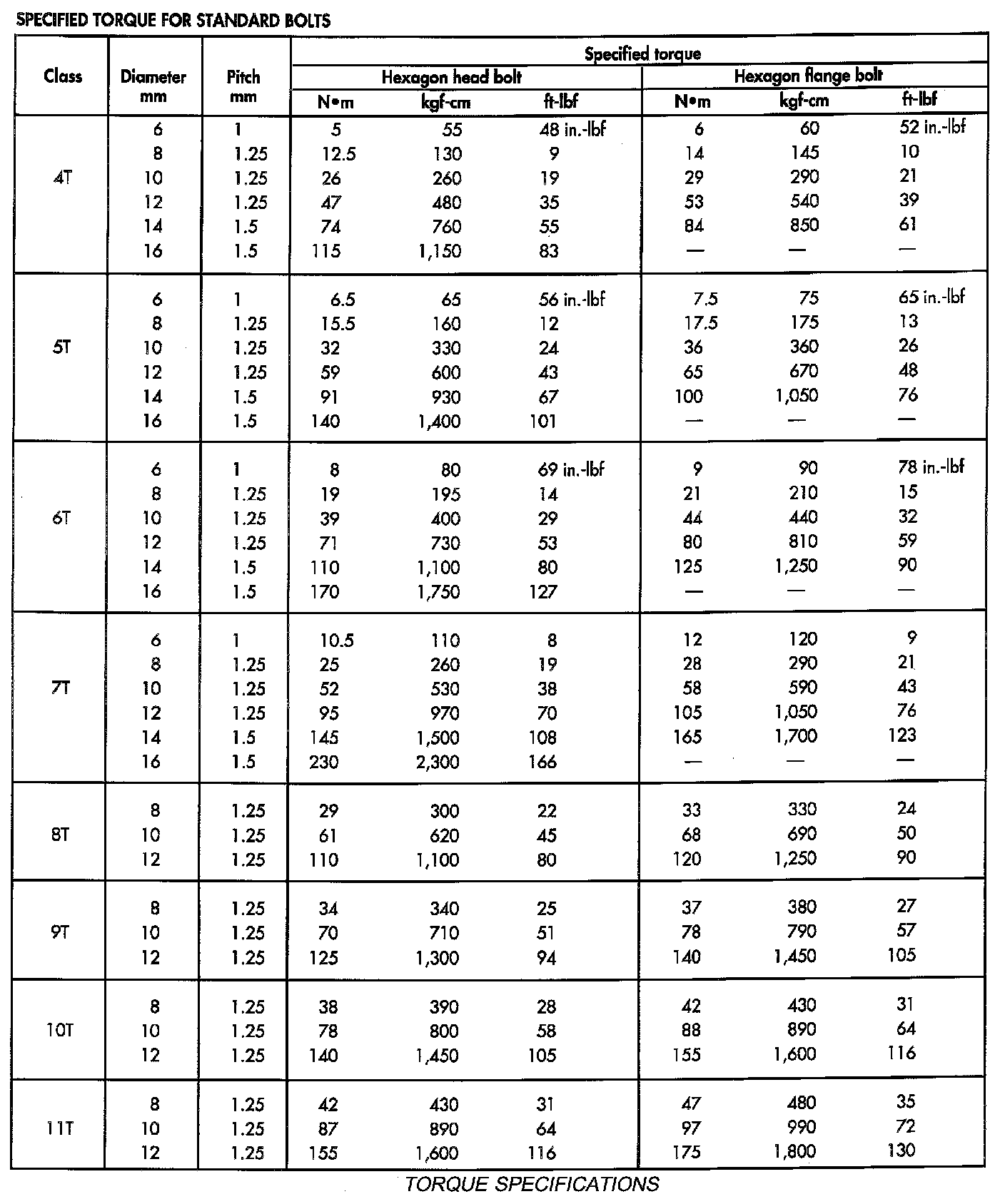 Torque Specifications: