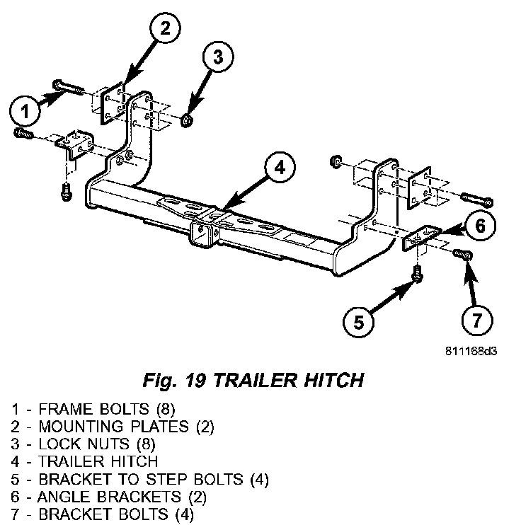 5. Support hitch and remove frame bolts. (Fig. 19)