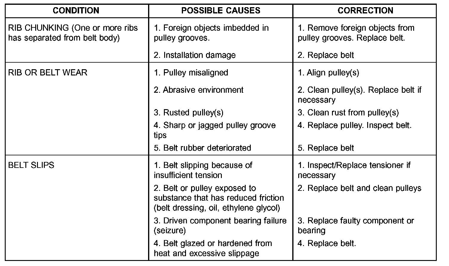 DIAGNOSIS AND TESTING - ACCESSORY DRIVE BELTACCESSORY DRIVE BELT DIAGNOSIS CHART
