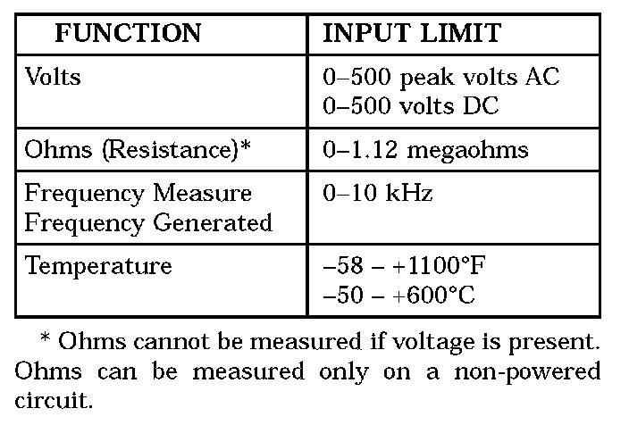 WARNING: EXCEEDING THE LIMITS OF THE DRBIII(R) MULTIMETER IS DANGEROUS. IT CAN EXPOSE YOU TO SERIOUS OR POSSIBLE FATAL INJURY. CAREFULLY READ AND UNDERSTAND THE CAUTIONS AND SPECIFICATION LIMITS.Follow the vehicle manufacturer's service specifications at all times.