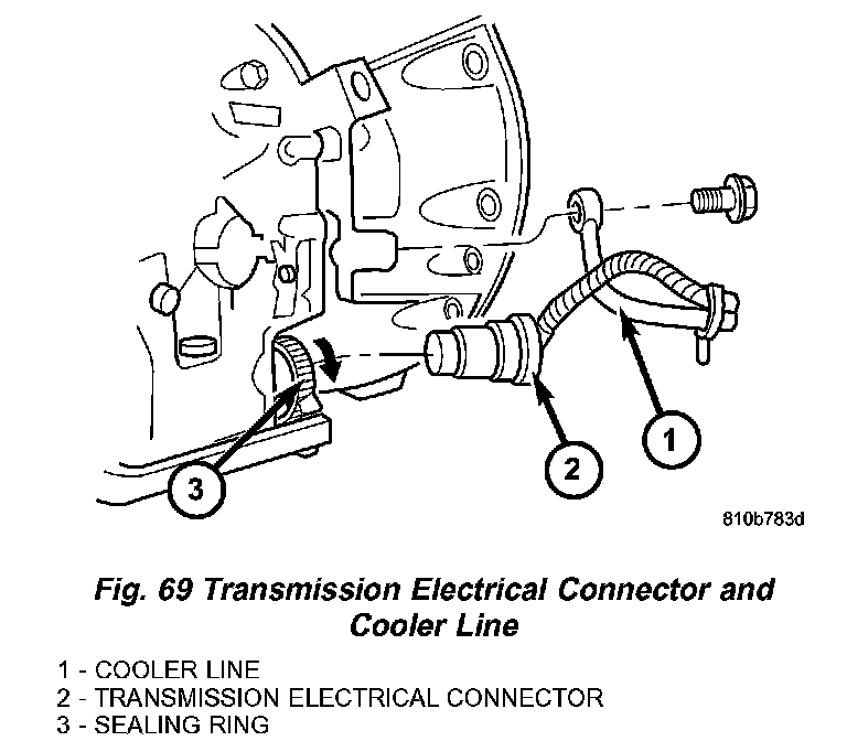 14. Install the transmission electrical connector (2) (Fig. 69) from transmission and hang to the side. Turn sealing ring (3) clockwise and connect plug connection (2).