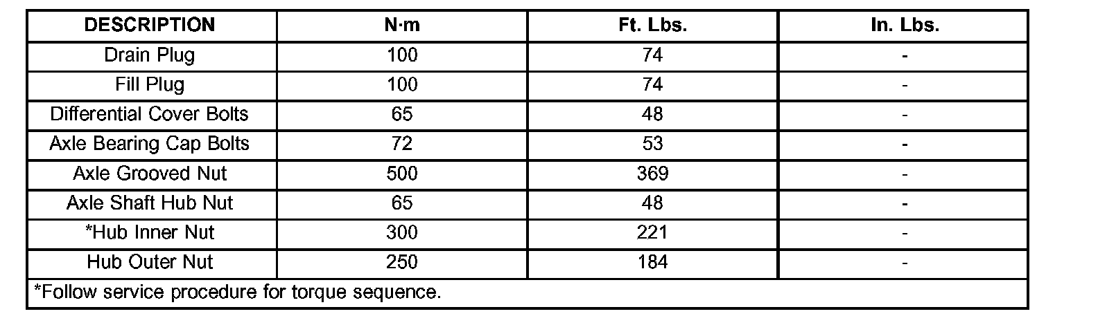 Torque Specifications: