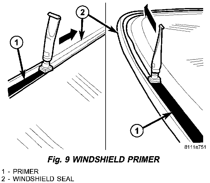 8. Apply primer to gluing surface at windshield seal. (Fig. 9)