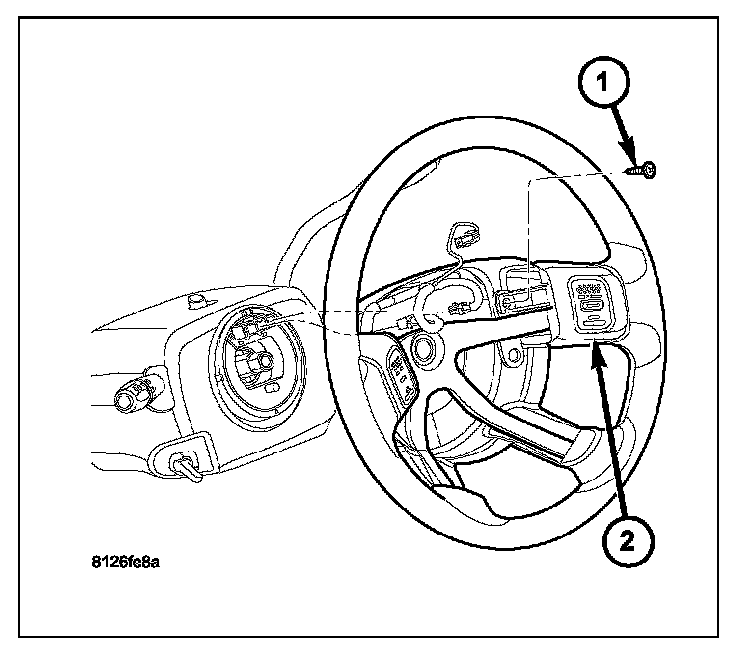 4. Remove speed control switch mounting screw (1) and remove switch from steering wheel.