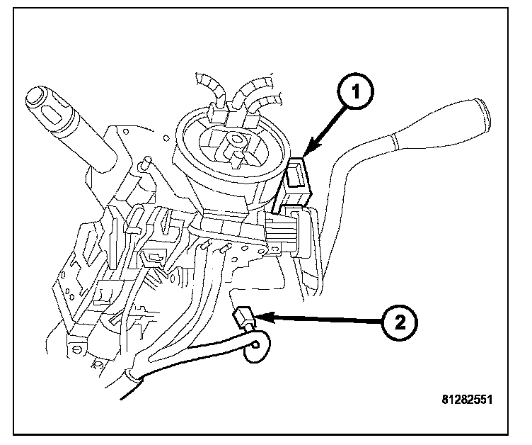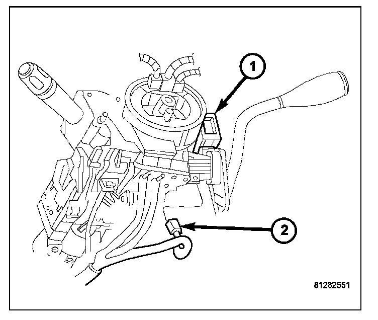 9. Remove the screw (2) that secures the SKREEM (1) to the steering column housing.