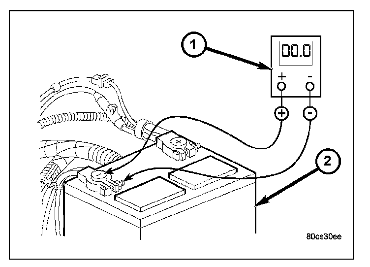 NOTE: Certain diesel equipped models use dual batteries. If equipped with dual battery system, procedure must be performed twice, once for each battery.