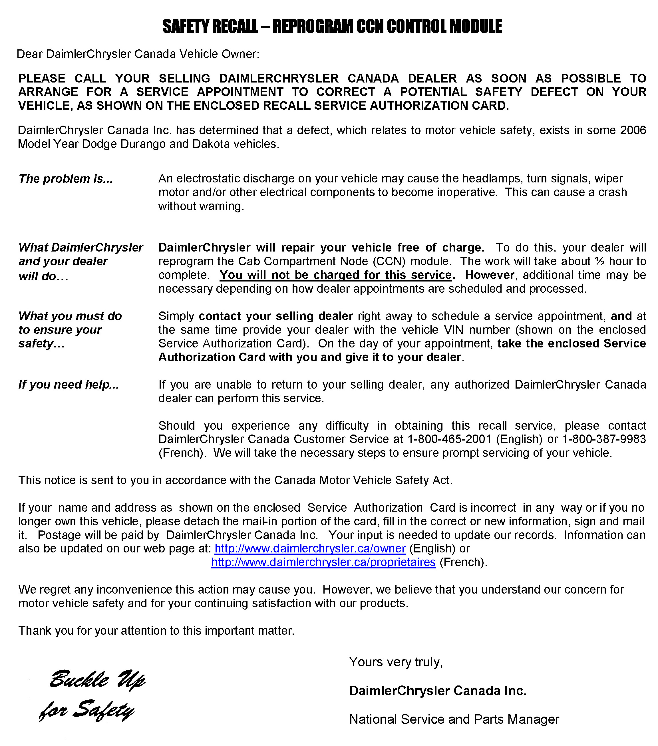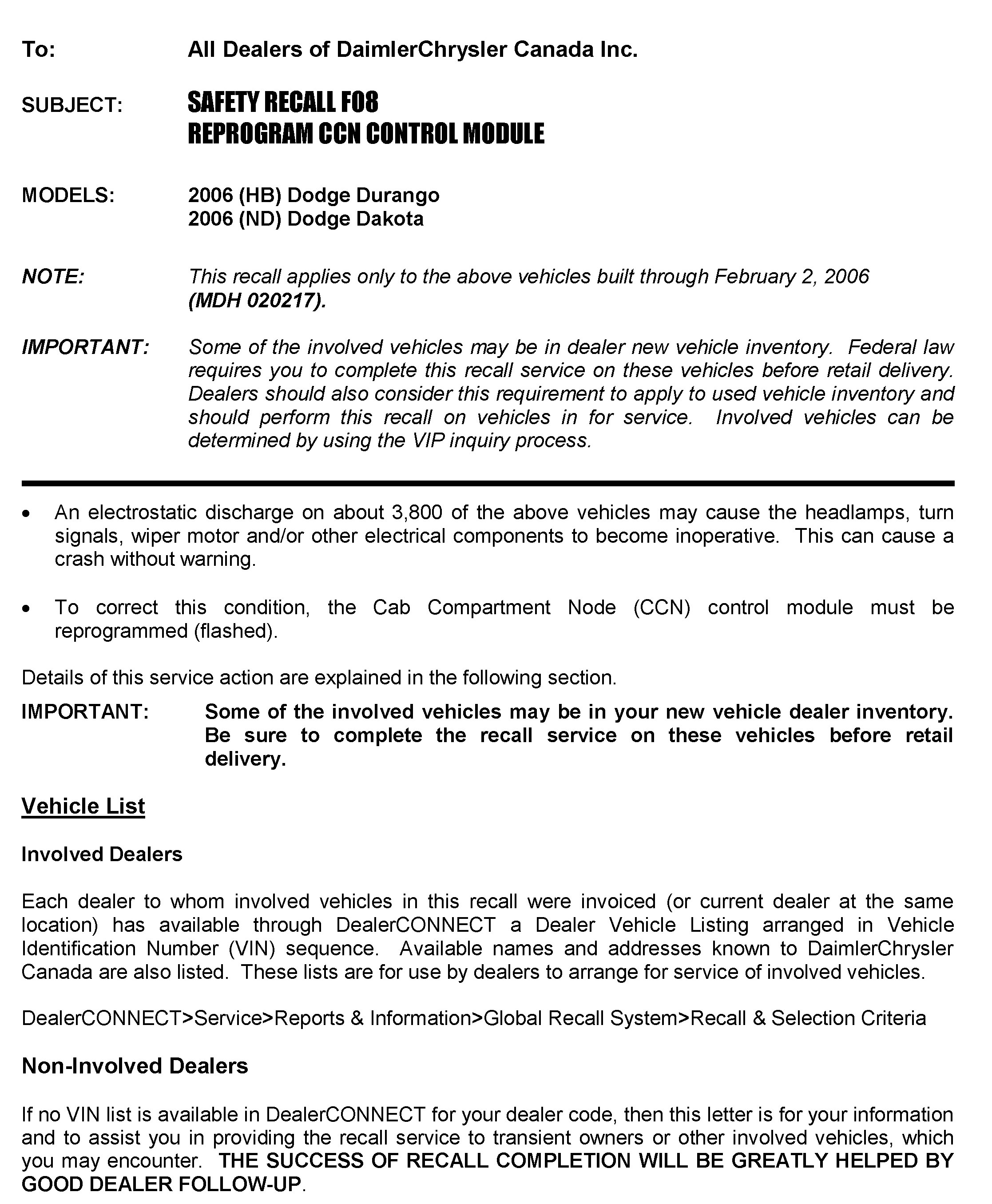 SAFETY RECALL F08 - REPROGRAM CCN CONTROL MODULE