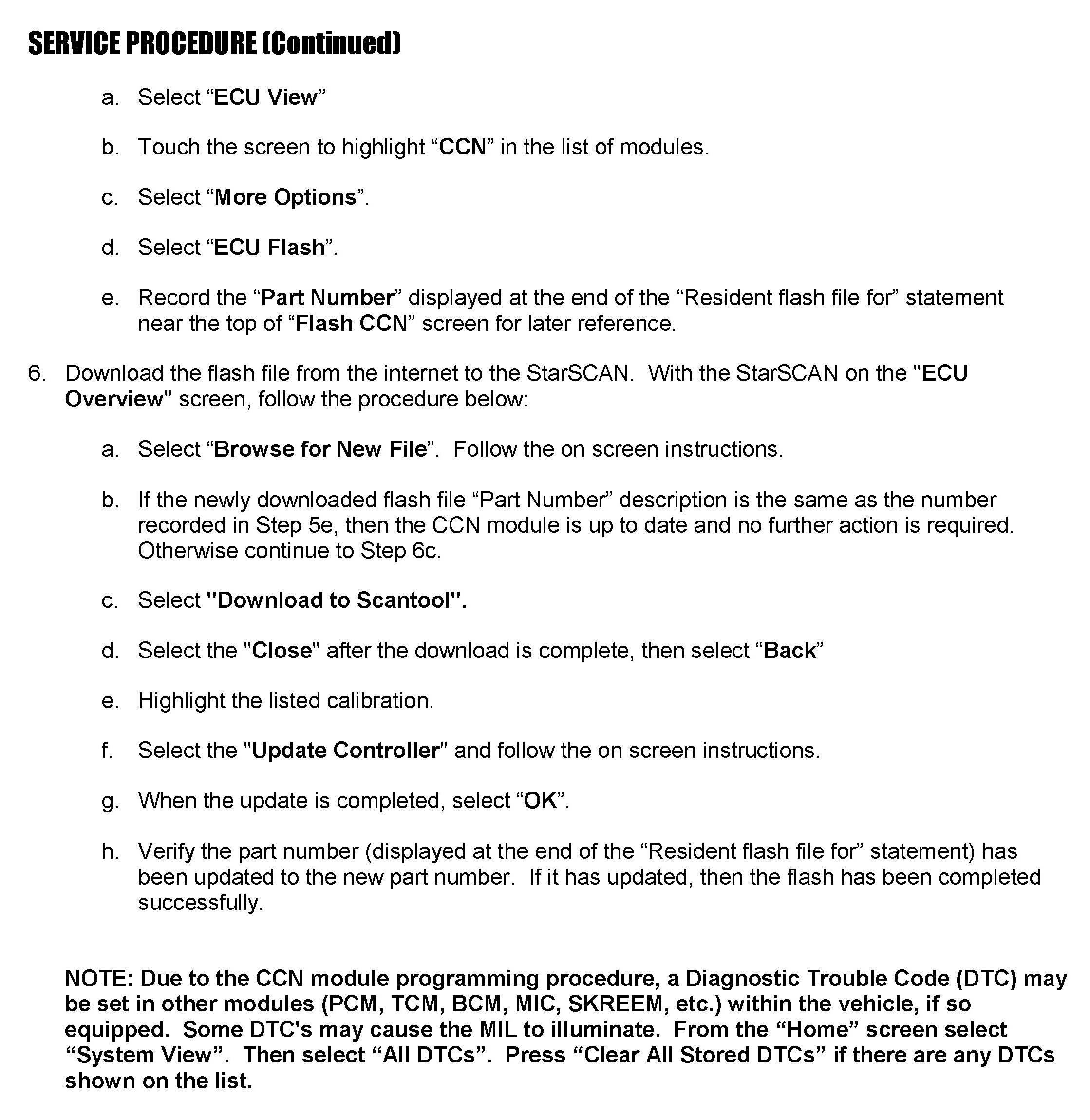^ To correct this condition, the Cab Compartment Node (CCN) control module must be reprogrammed (flashed).