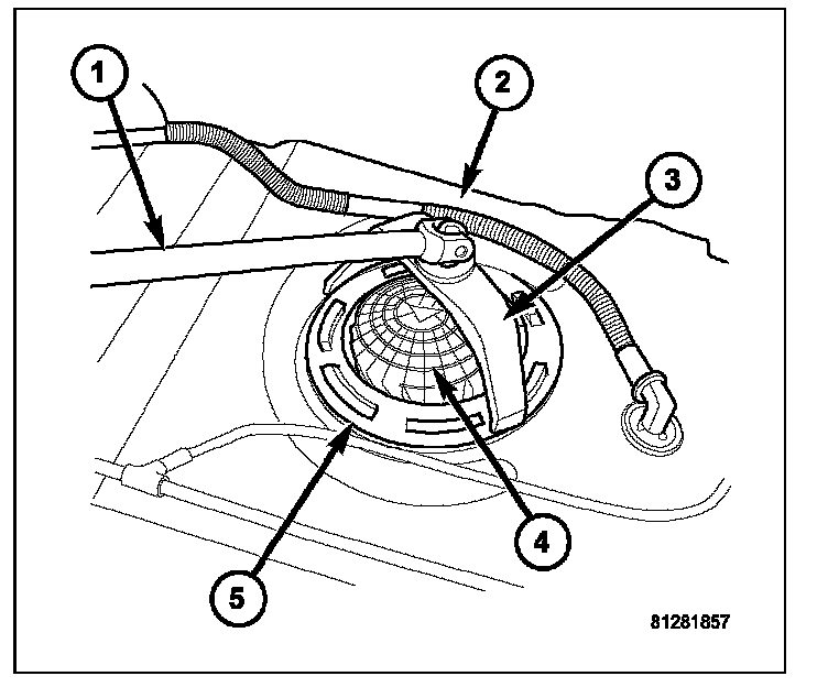 CAUTION: Whenever the fuel pump module is serviced, the rubber seal (gasket) must be replaced.