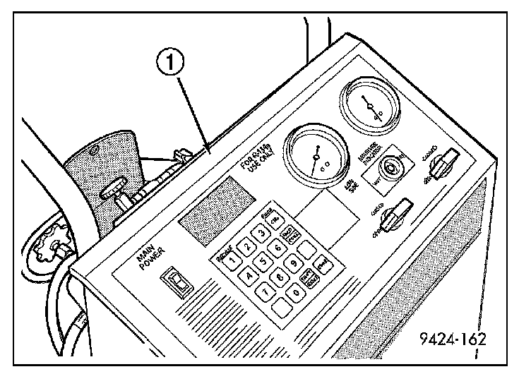WARNING: REFER TO THE APPLICABLE WARNINGS AND CAUTIONS FOR THIS SYSTEM BEFORE PERFORMING THE FOLLOWING OPERATION. FAILURE TO FOLLOW THE WARNINGS AND CAUTIONS COULD RESULT IN POSSIBLE PERSONAL INJURY OR DEATH.An R-134a refrigerant recovery/recycling/charging station (1) that meets SAE standard J2210 must be used to recover the refrigerant from the R-134a refrigerant system. Refer to the operating instructions supplied by the equipment manufacturer for the proper care and use of this equipment.
