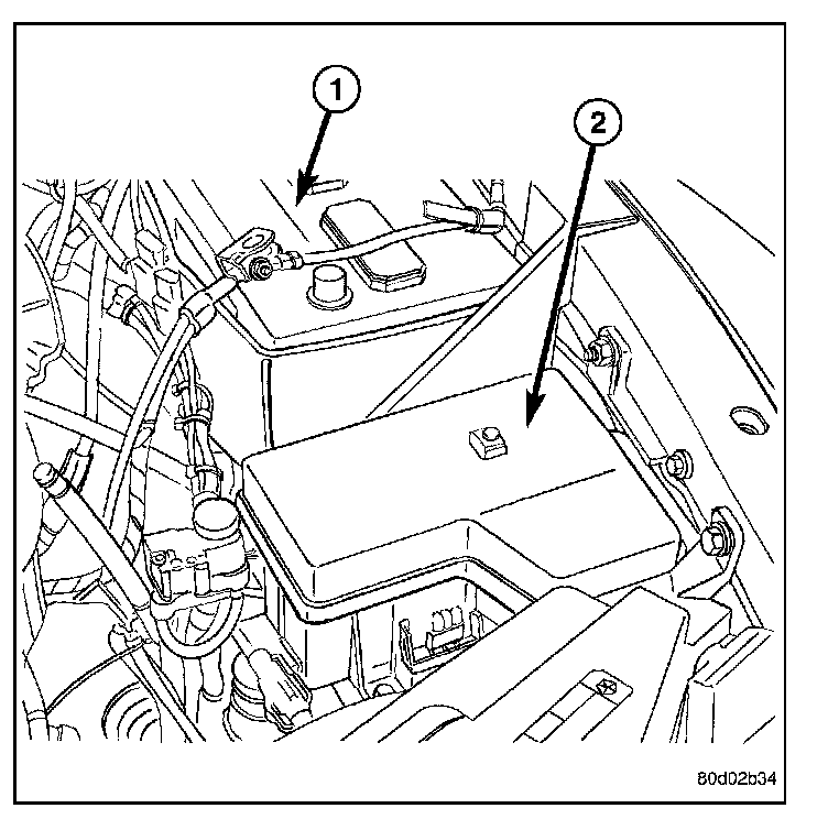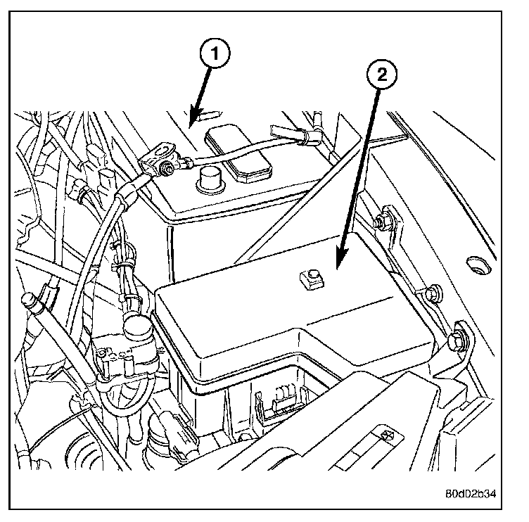 The ASD relay is located in the Power Distribution Center (PDC) (2). Refer to label on PDC cover for relay location.REMOVAL