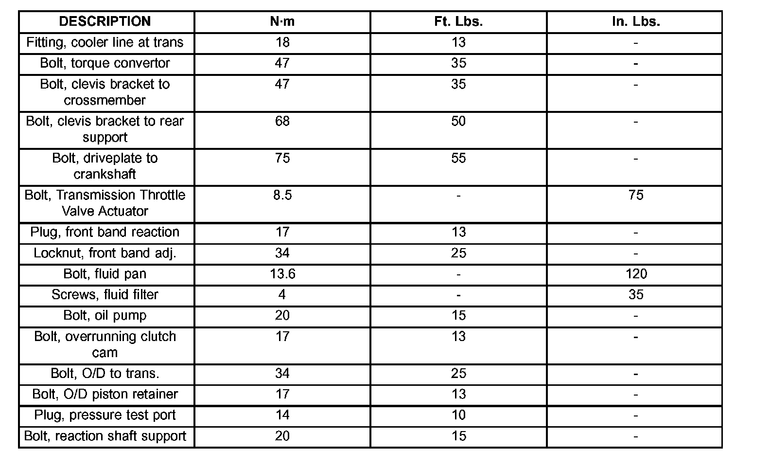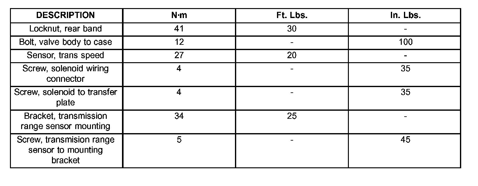 TORQUE SPECIFICATIONS: