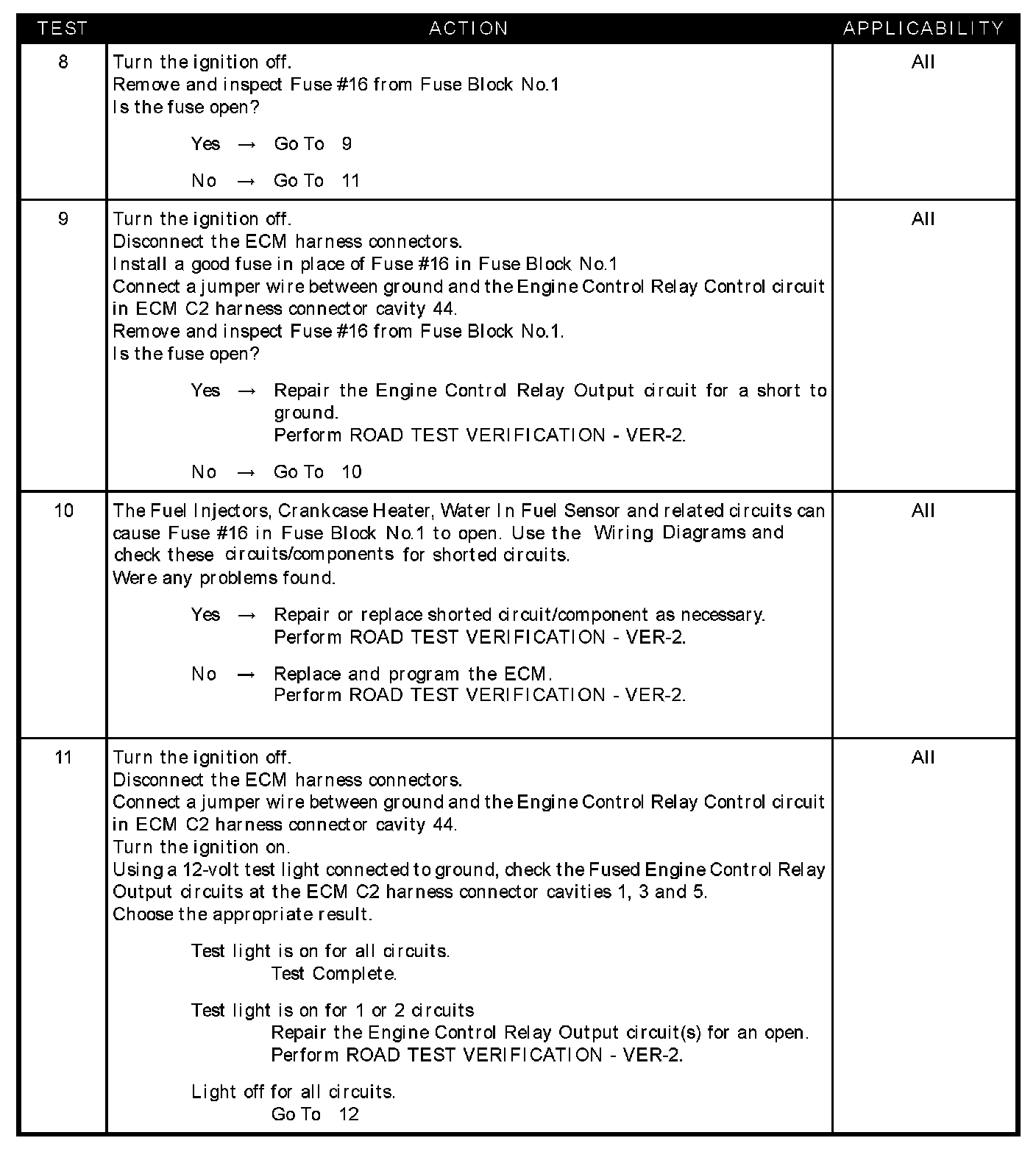 - Engine control relay output CKT shorted to ground fuse #16