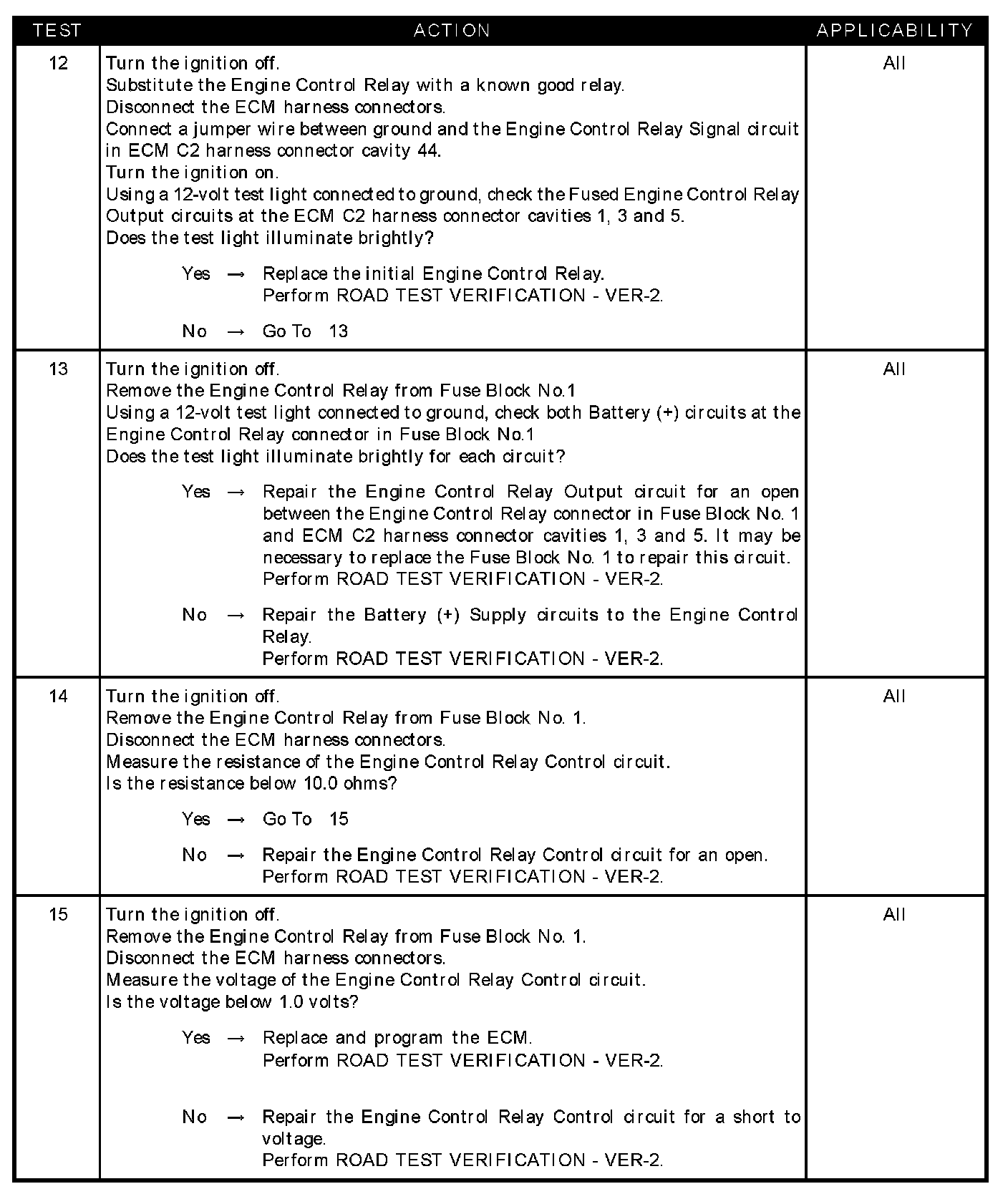 - Engine control relay output circuit(s) open