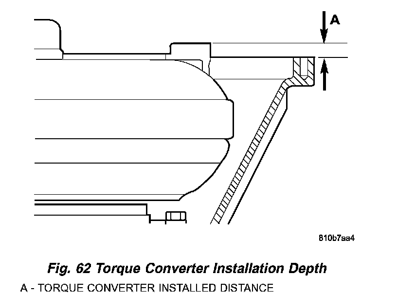 2. Measure distance "A" (Fig. 62) from torque converter to transmission housing. If the torque converter is properly installed, distance "A" will be 55 mm (2.17 inch).