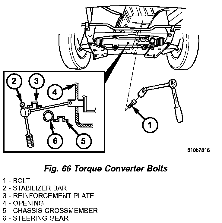 a. Install the first pair bolts (2) (Fig. 66) at circumference of driving plate snug only.