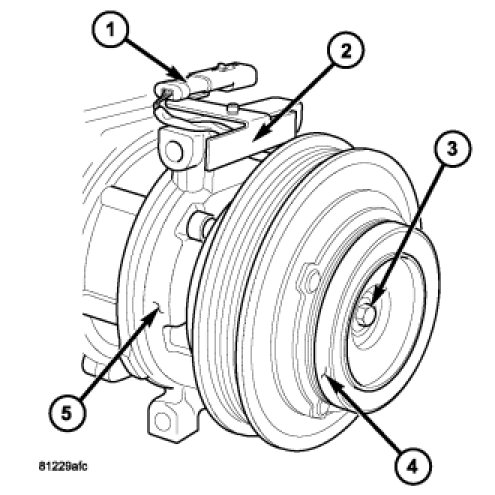 6. Install the clutch plate (4) onto the front of the A/C compressor (5).