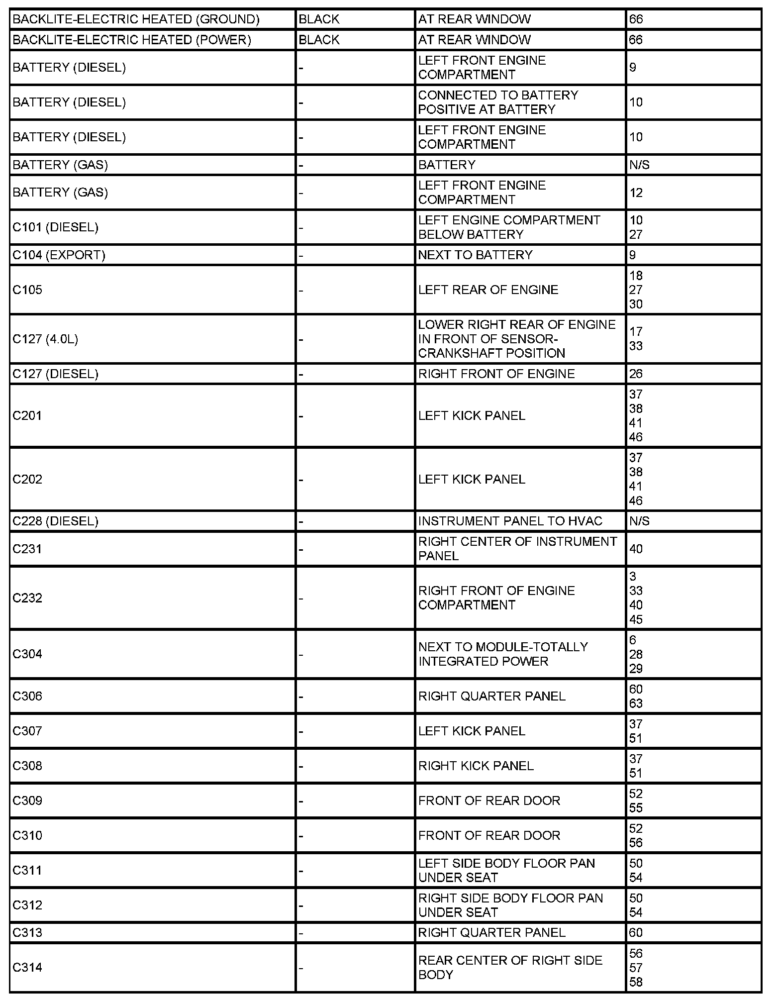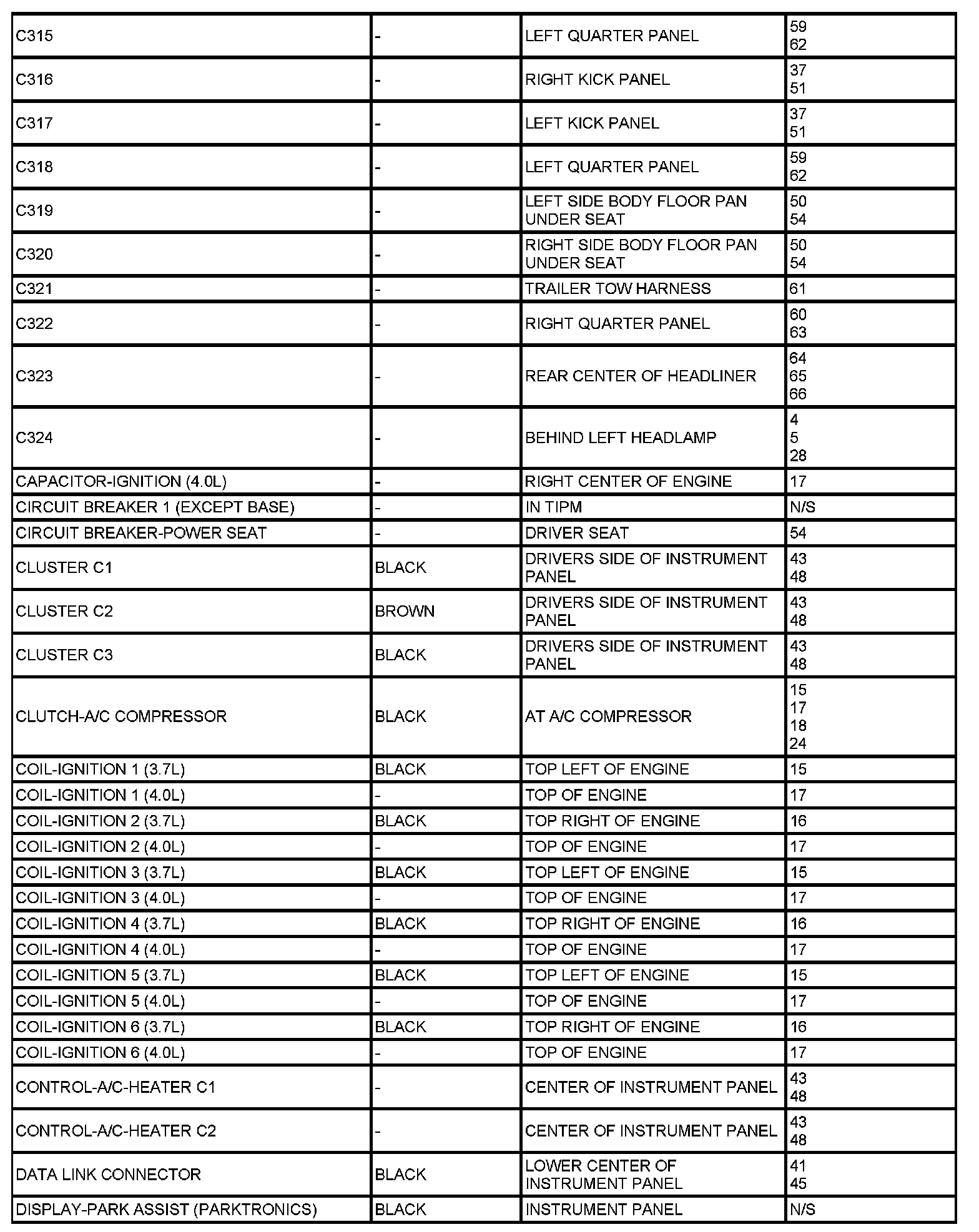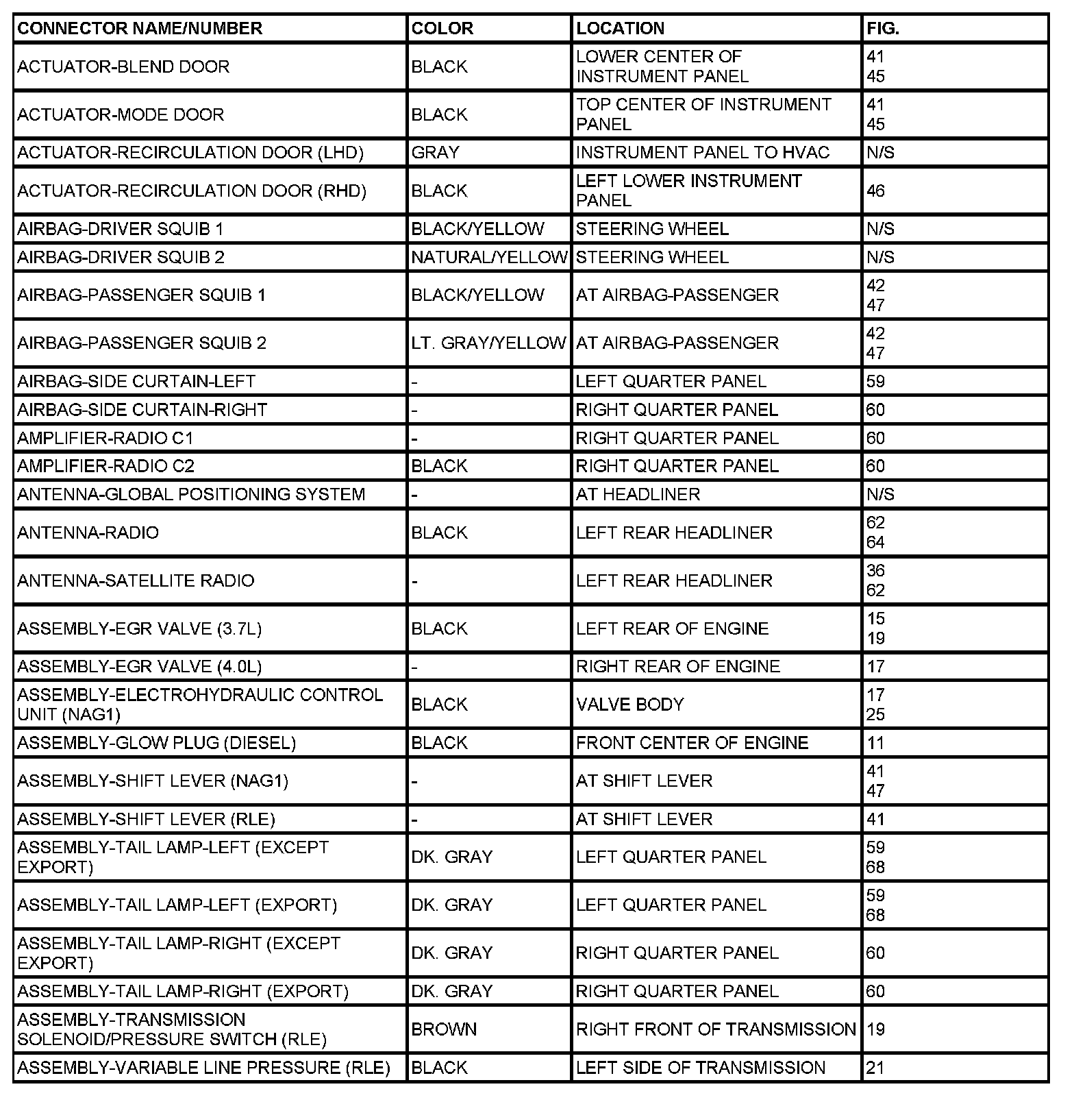 If a link on the index chart to a figure is not provided, that means that the connector and/or figure in question does NOT apply to the vehicle model selected.