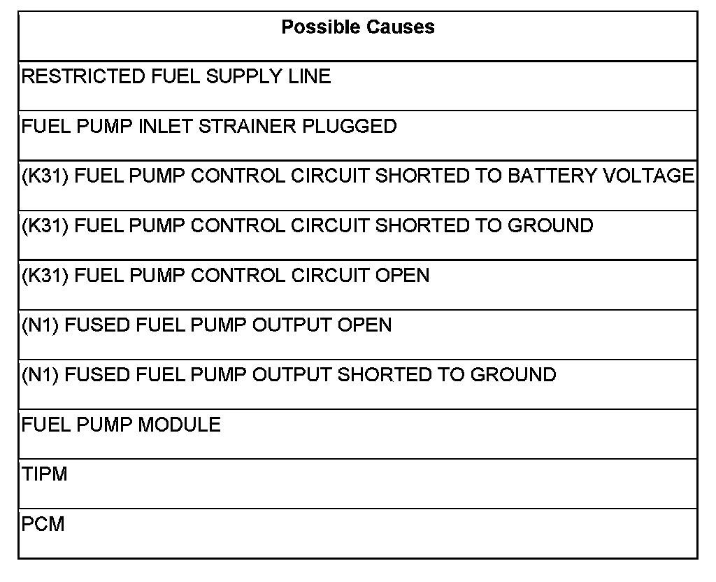 - Repair the short to ground in the (N1) Fused Fuel Pump Output circuit.