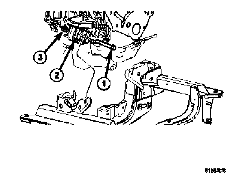 9. Remove the nut (3) from the through bolt (1) on the right side engine mount (3).