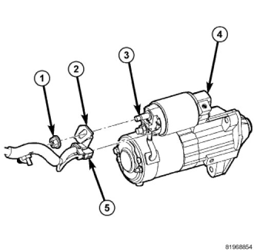 1. Rotate starter assembly (2) to allow positioning into transmission.