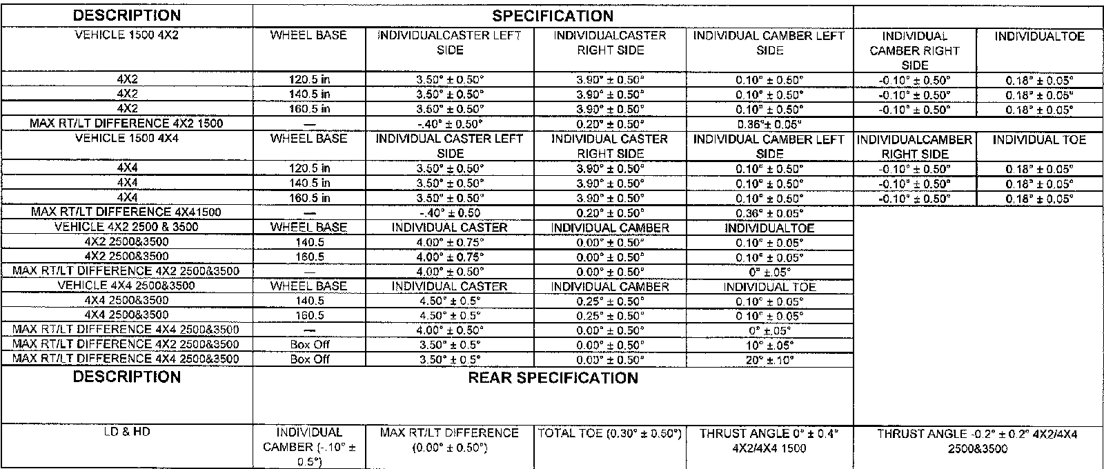 ALIGNMENT SPECIFICATIONS