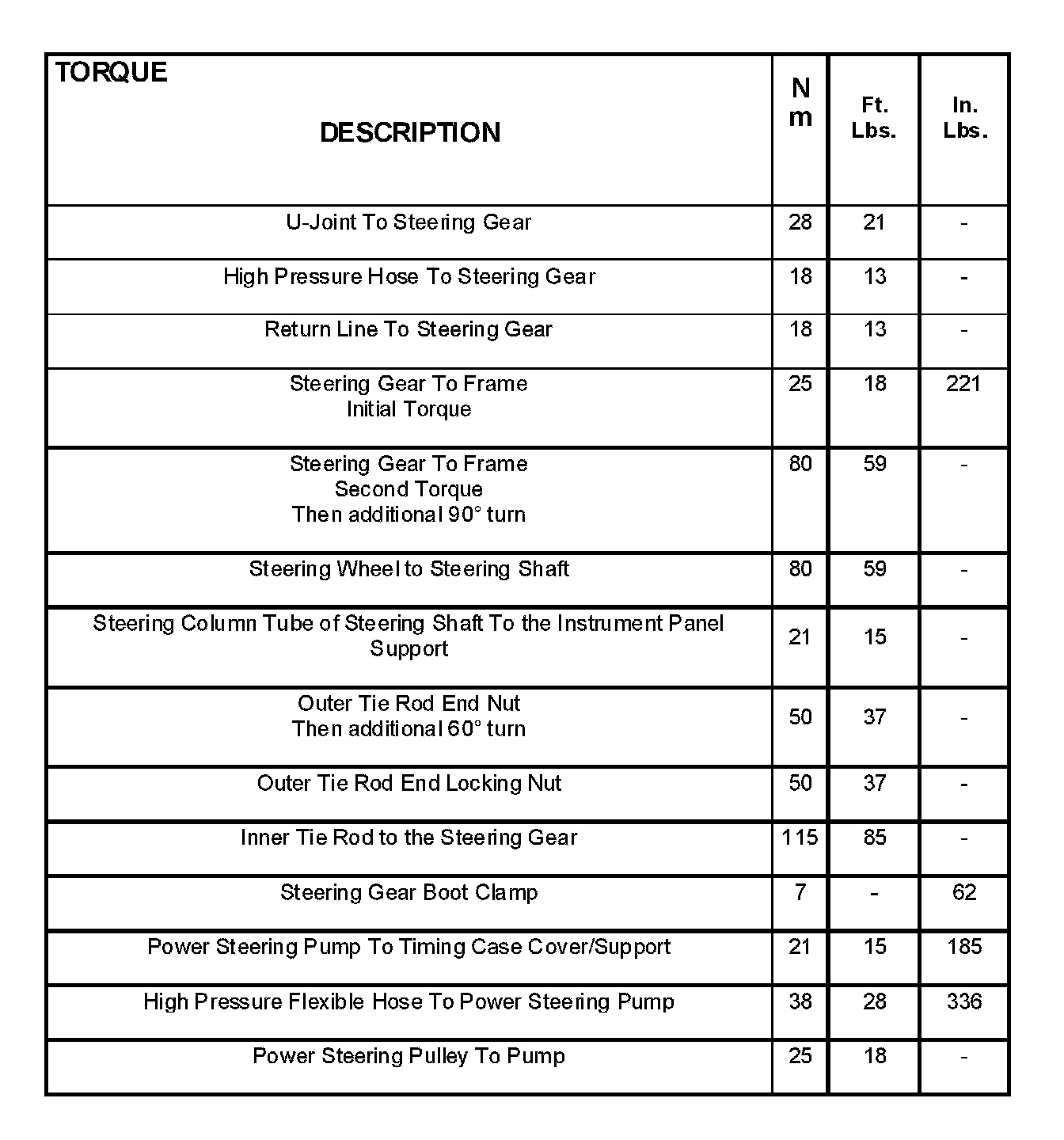 Torque Specifications: