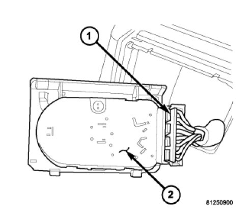 3. Disconnect the wire harness connector (1) from the rear A/C-heater control (2).