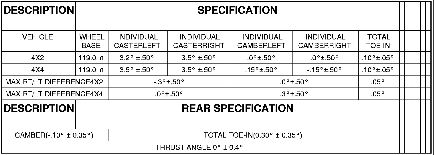 NOTE: All alignment specifications are in degrees.