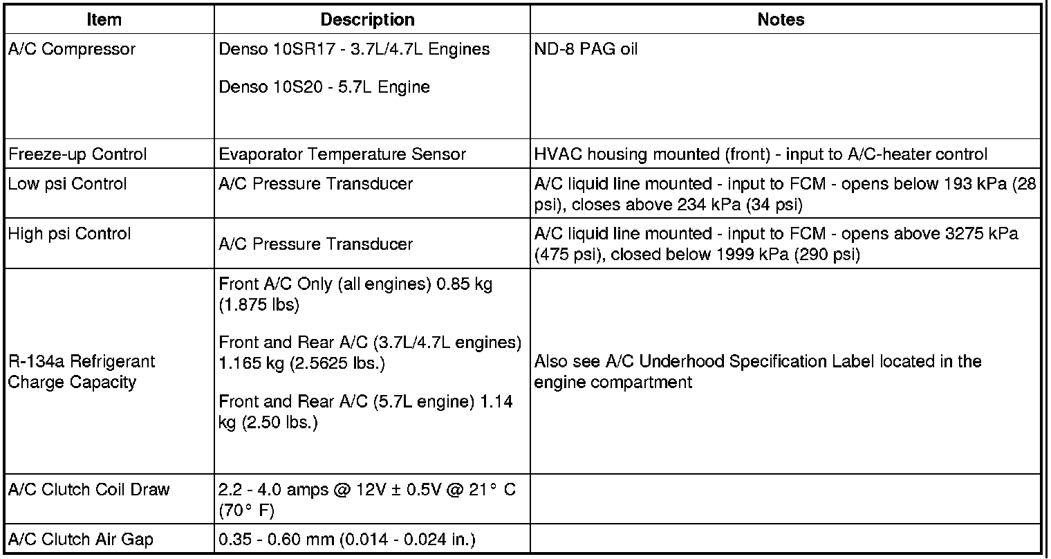 Heating and Air Conditioning Specifications - A/C System