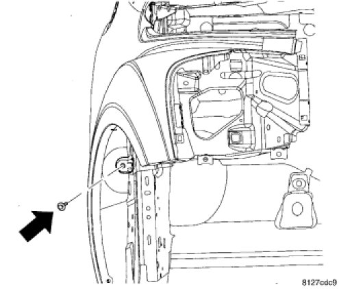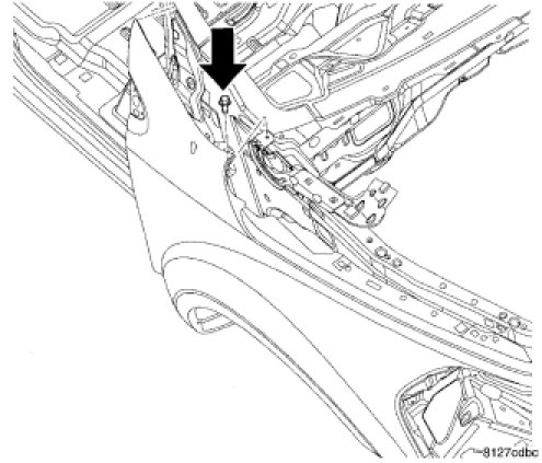 11. Remove the upper fender bolt support bolt to the hood hinge.