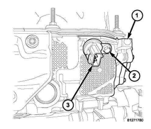 4. Install mounting bolt (2) and tighten to 12 Nm (106 in.lbs).