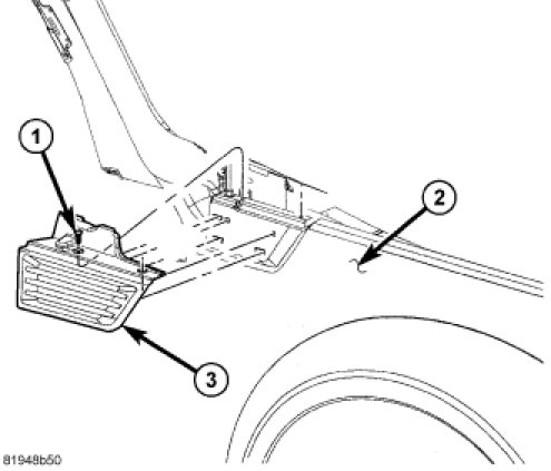 3. Align the fender applique (3) to the fender assembly (2) and apply enough hand pressure in order to make sure the clips are fully seated.