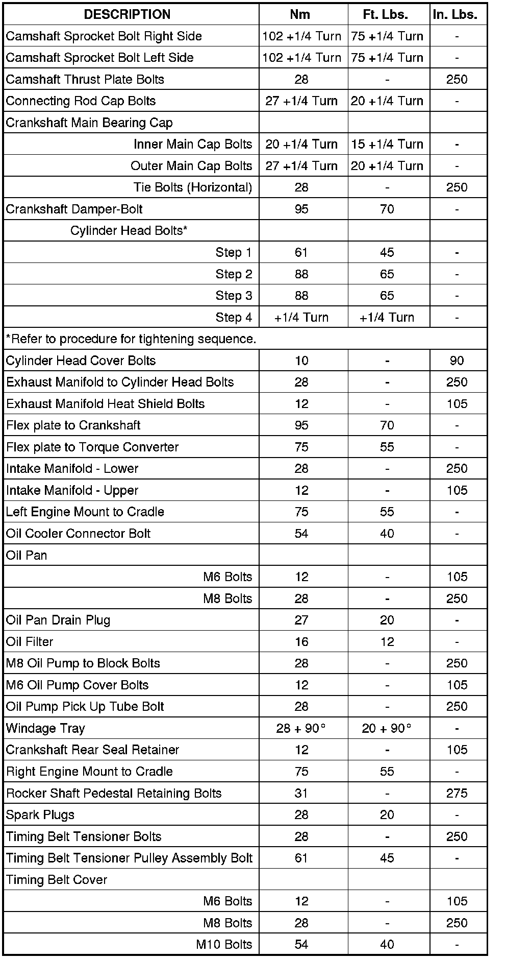 Engine Torque Specifications