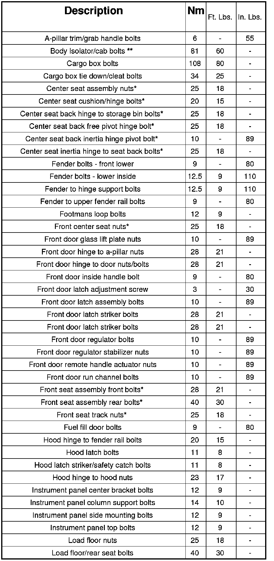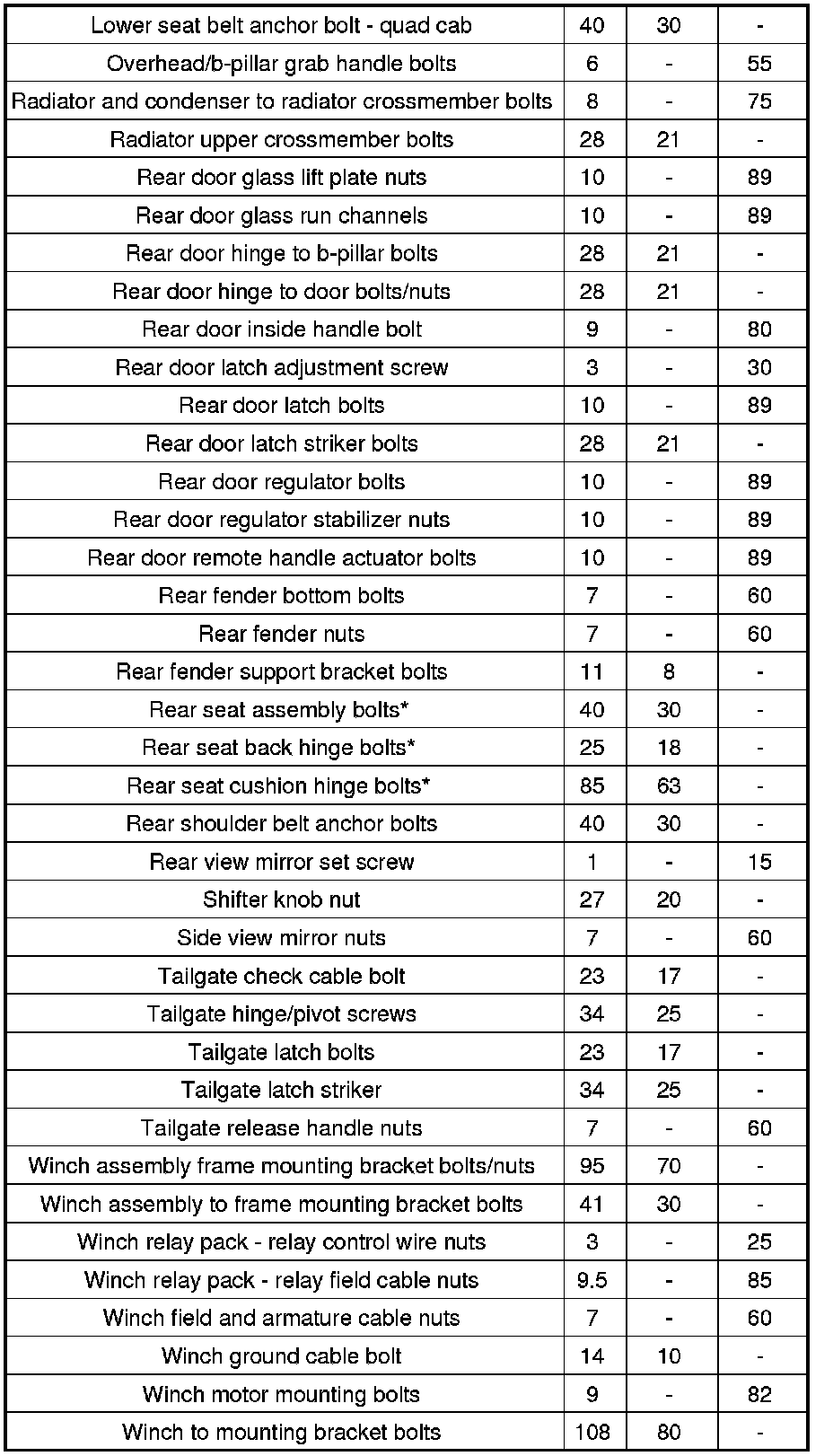 NOTE: * Seat fasteners should be discarded and replaced with new fasteners during assembly.