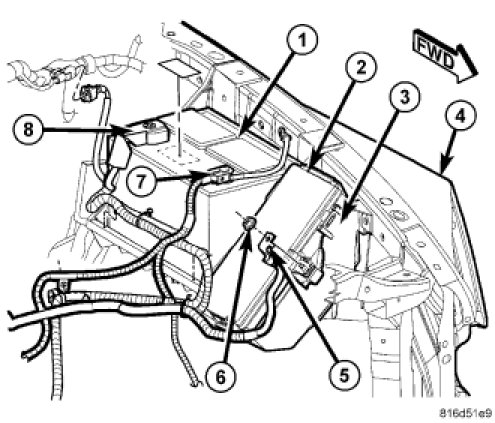 1. Position the Totally Integrated Power Module (1)(TIPM) into the vehicle.