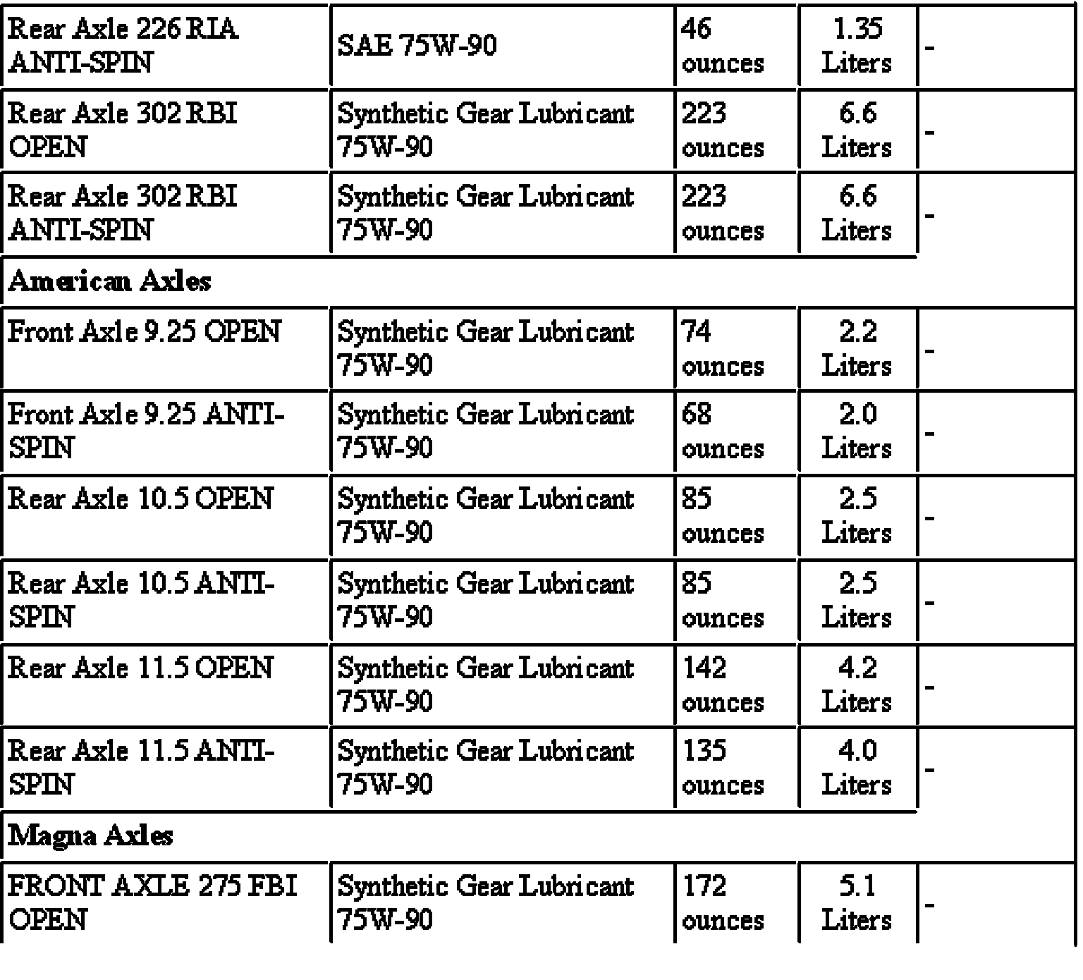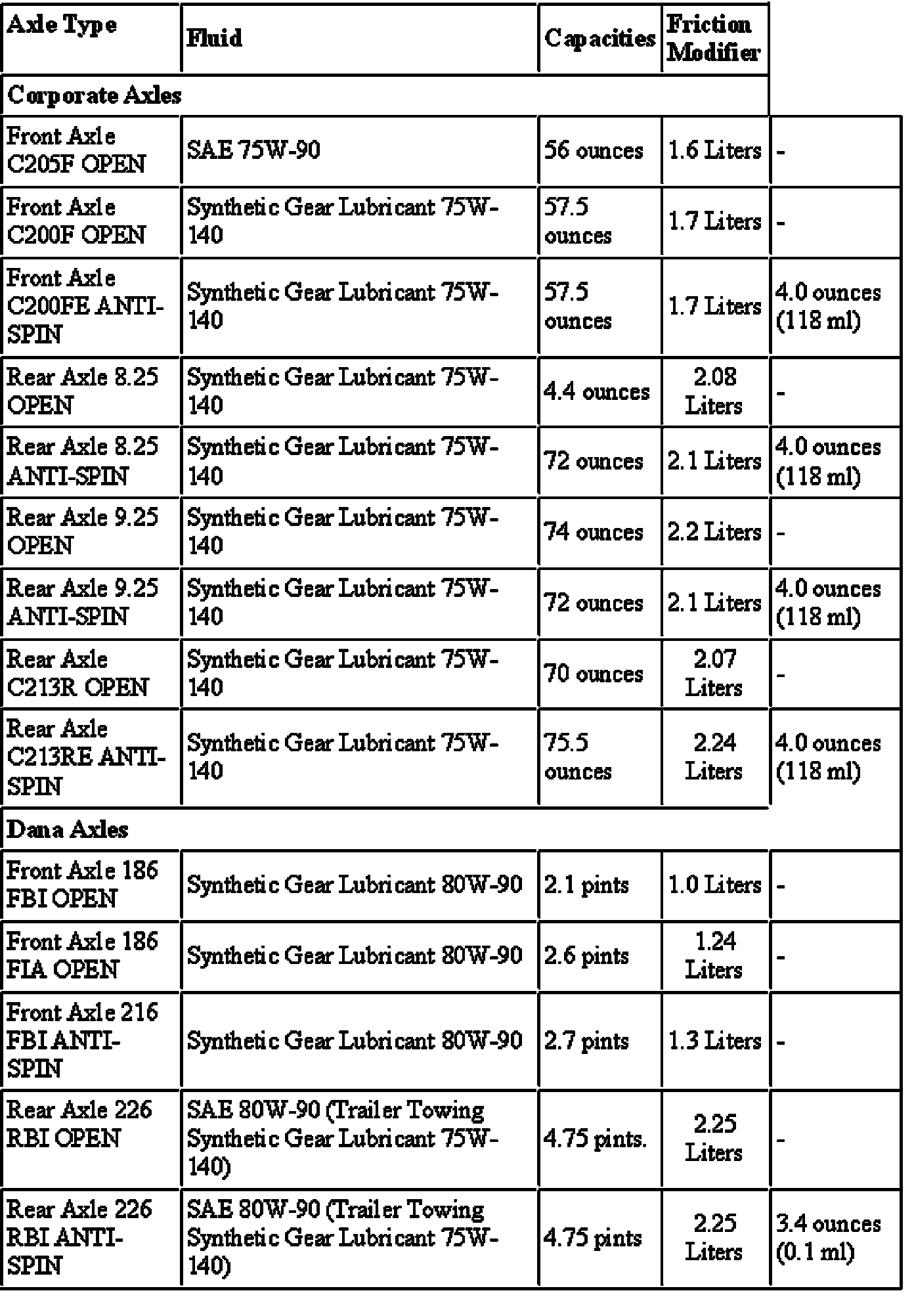 Capacity Specifications