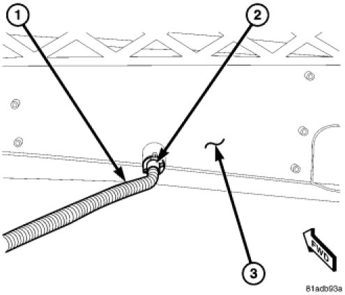 1. Connect the wire harness connector (1) to the ambient air temperature sensor (2).