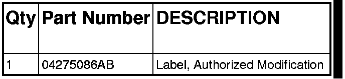 7. Type the necessary information on the "Authorized Modification Label" (p/n 04275086AB) and attach near the VECI label(see section 3).