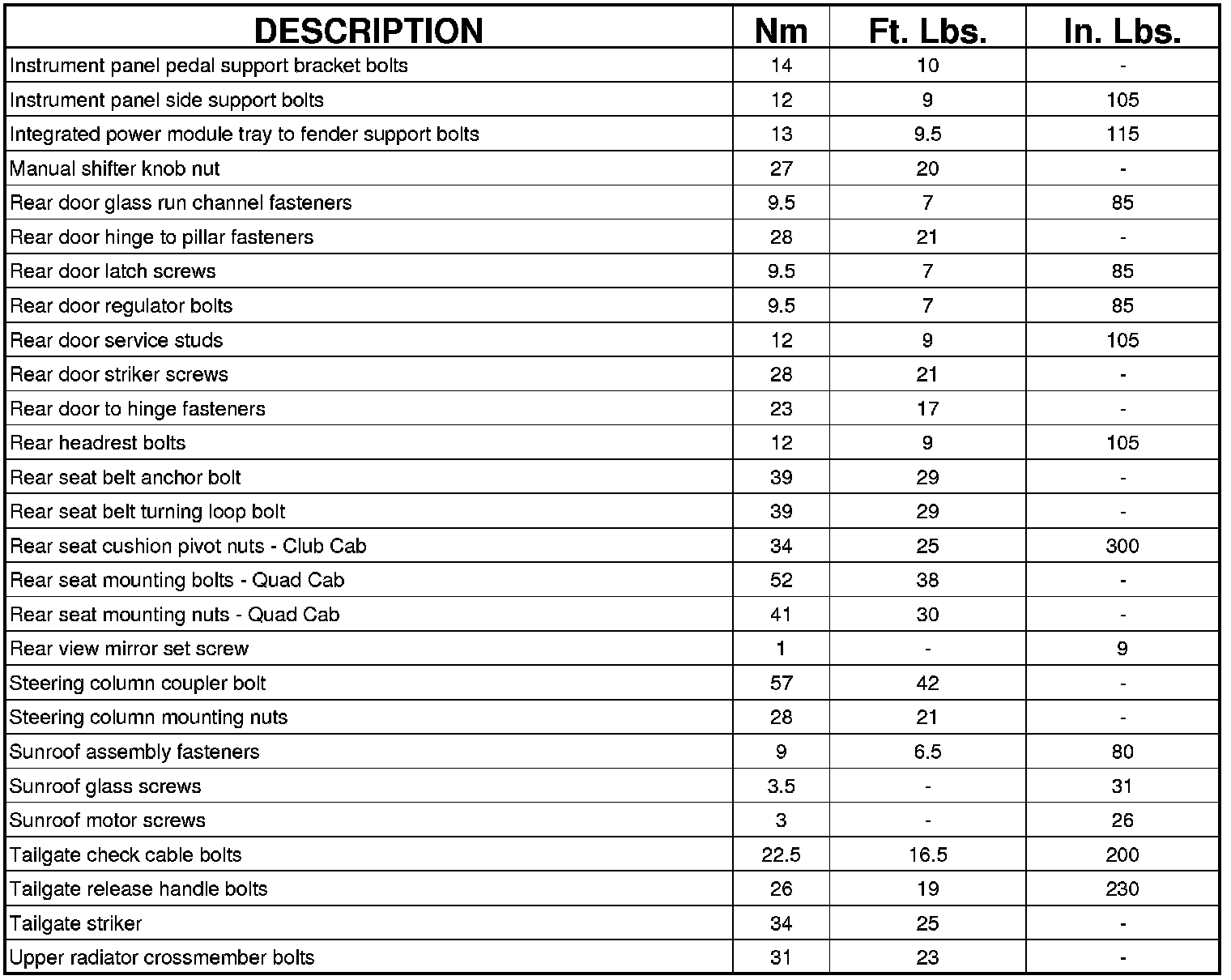 FASTENER TORQUE