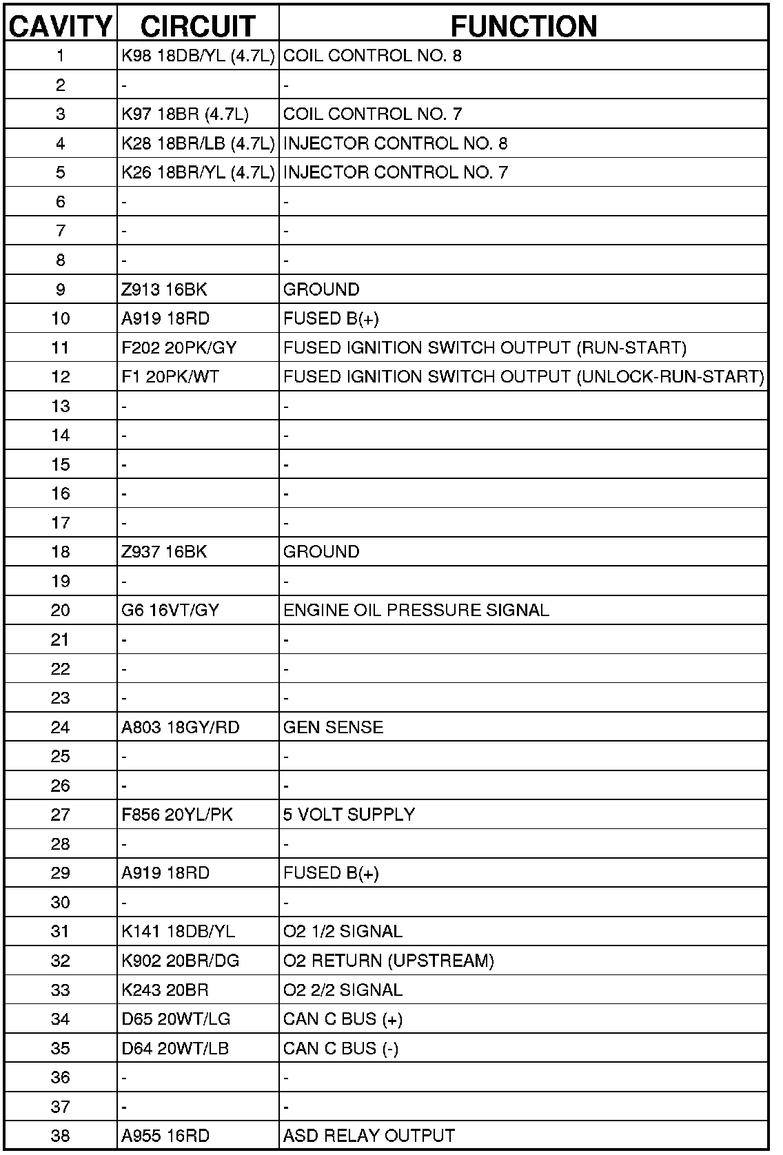 Connector C1 - (ENGINE) 38 WAY