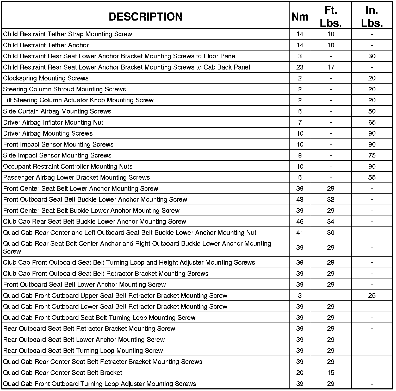 FASTENER TORQUE