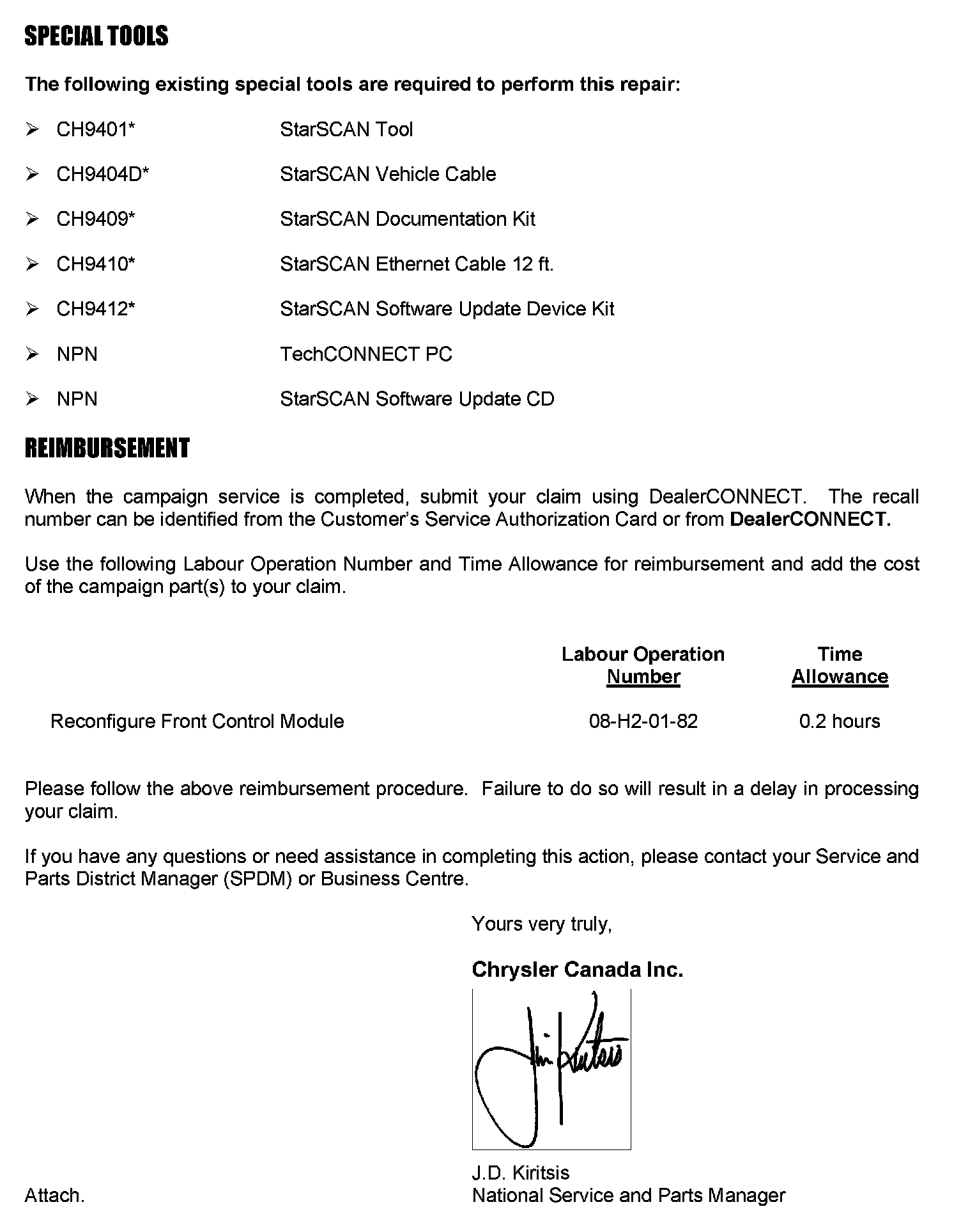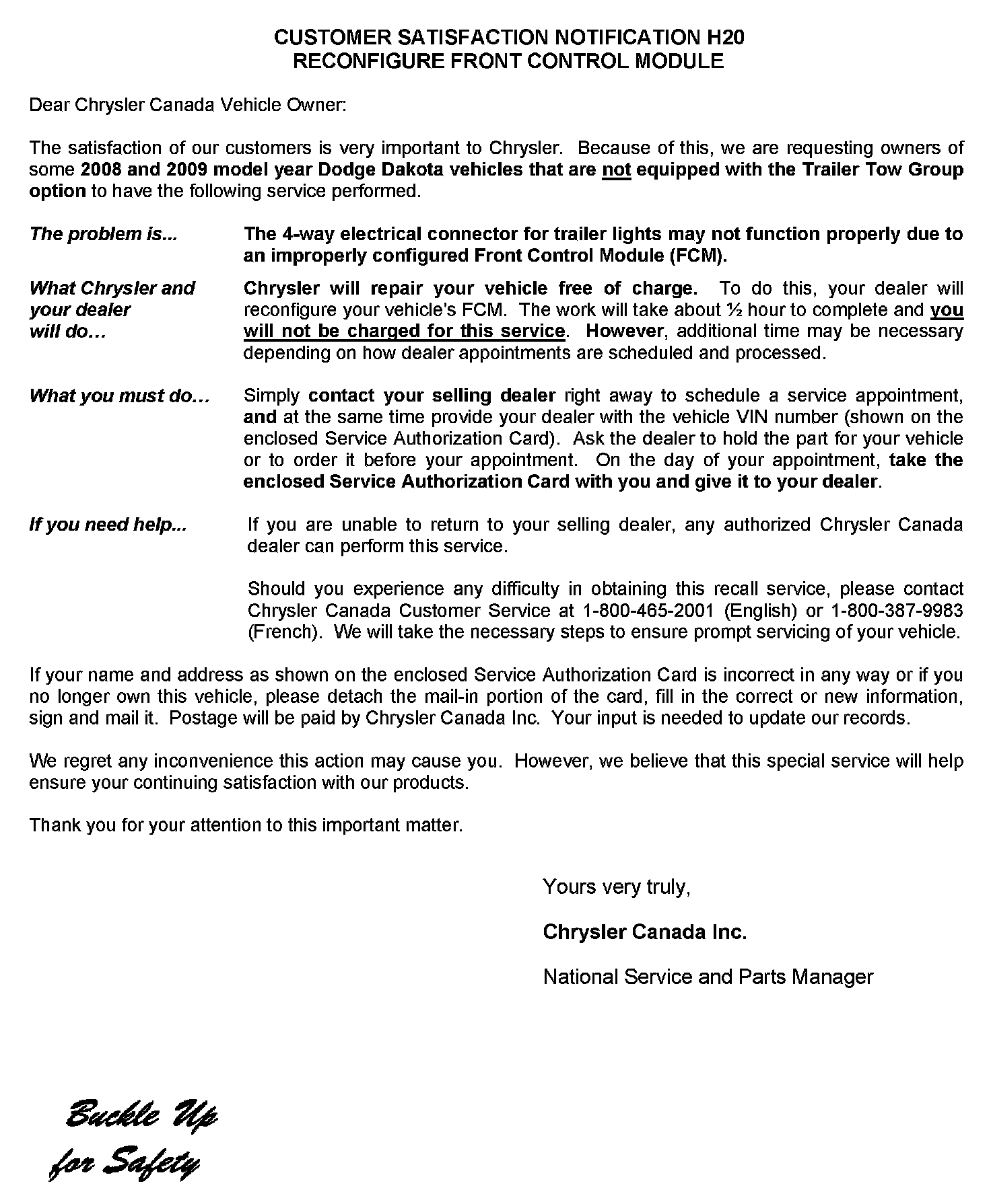 CUSTOMER SATISFACTION NOTIFICATION H20 RECONFIGURE FRONT CONTROL MODULE