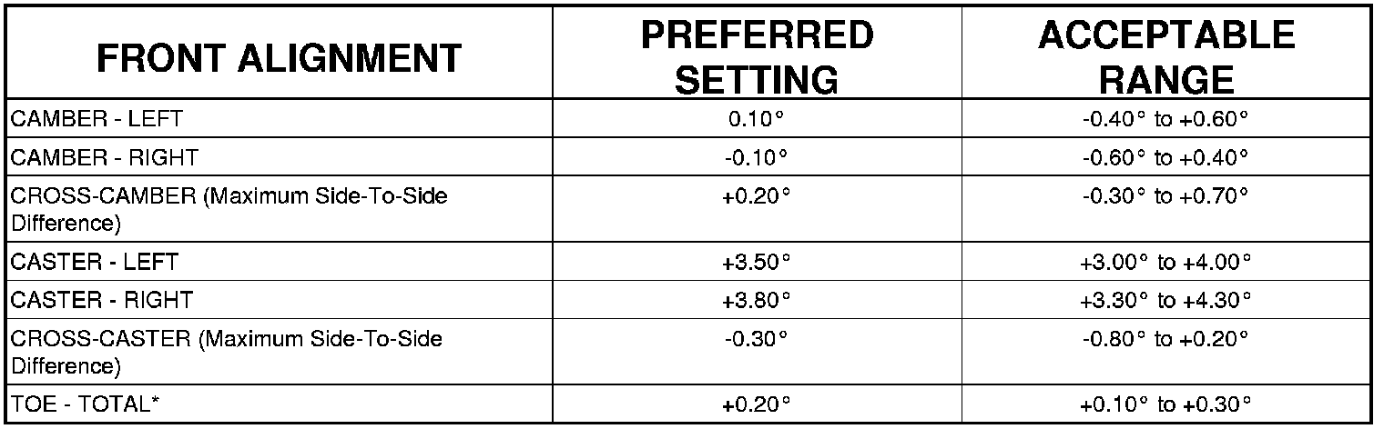 All wheel alignments are to be set with the vehicle at curb height