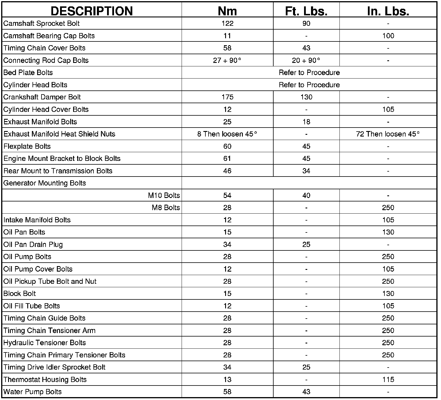Flywheel Bolts 95 Nm (70 ft. lbs.)