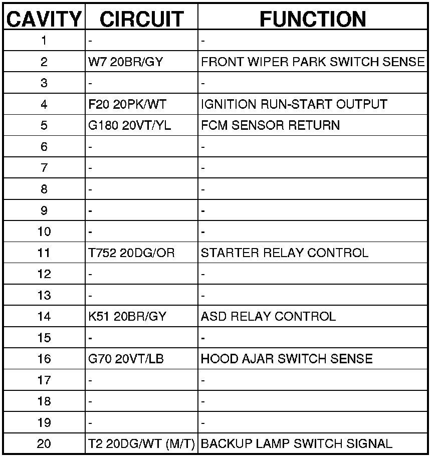 Connector C1 - (HEADLAMP AND DASH) 20 WAY