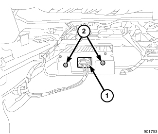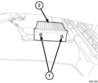 1. Install the power inverter (2) by sliding it toward the passenger door.