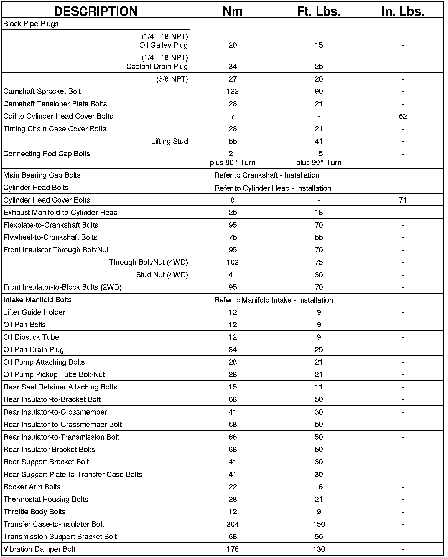 Intake Manifold Bolts 12 Nm (9 ft. lbs.)